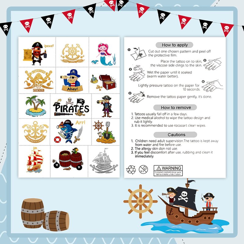 - 【Applicable Place】These tattoos stickers are suitable for kids pirate birthday party supplies, party favors, pirate decor, DIY decorations, rewards and so on. Are you looking for the cute pirate party accessories? The pirate tattoos is your good choice, which will add more fun of parties!