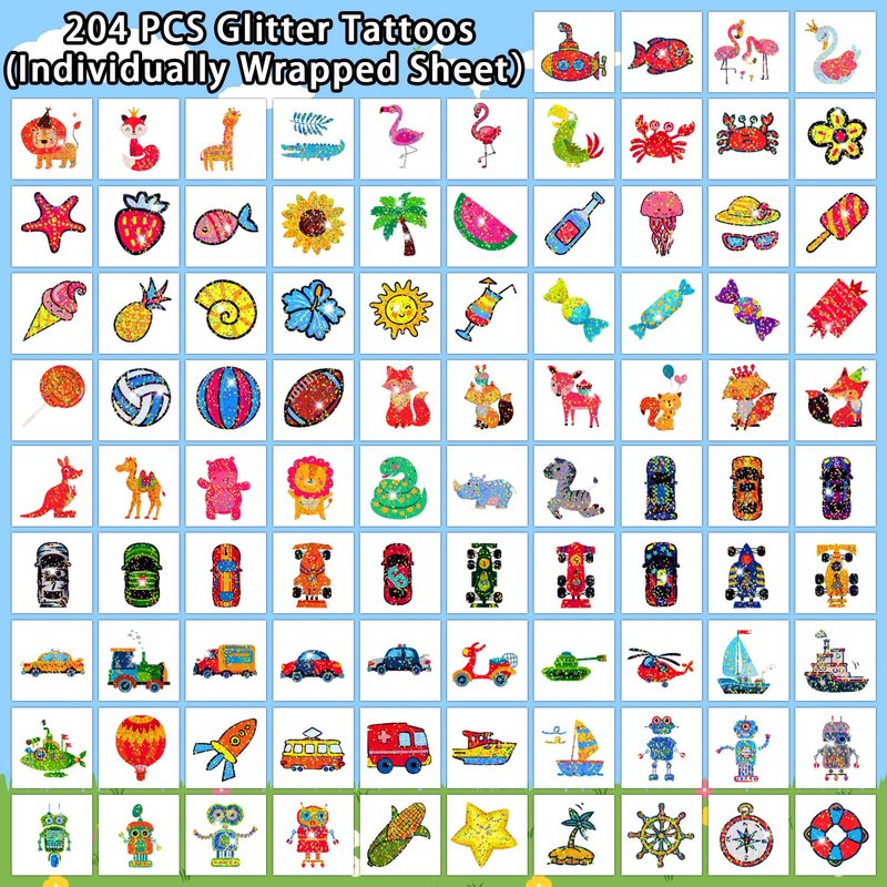 - 【Individually Wrapped Sheets】Partywind temp tattoos are individually wrapped sheets, they are easy to carry and can be distributed to kids individually. There are 408 patterns in one set, which means that every child at the party can get a cute tattoo. No need to use scissors and this keeps the children safe while they play.
