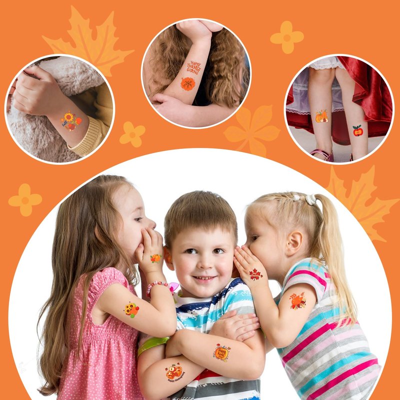 - 【Fun for Thanksgiving Party Decor】These tattoos stickers are great for kids Thanksgiving party supplies, party favors, fall party decorations, autumn party, thanksgiving crafts, decor, goodie bag fillers, games, toys, and so on. Suitable for boys, girls, baby, teens, children.