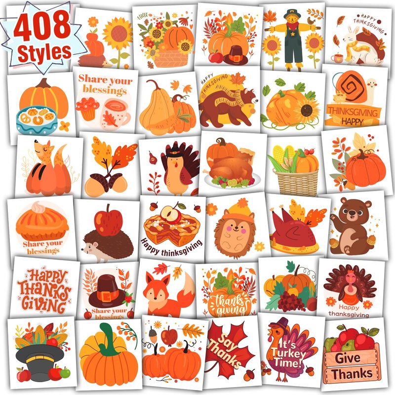 408 Different sheets cute Thanksgiving temporary tattoos for kids boys girls. (Individually Wrapped Sheets)