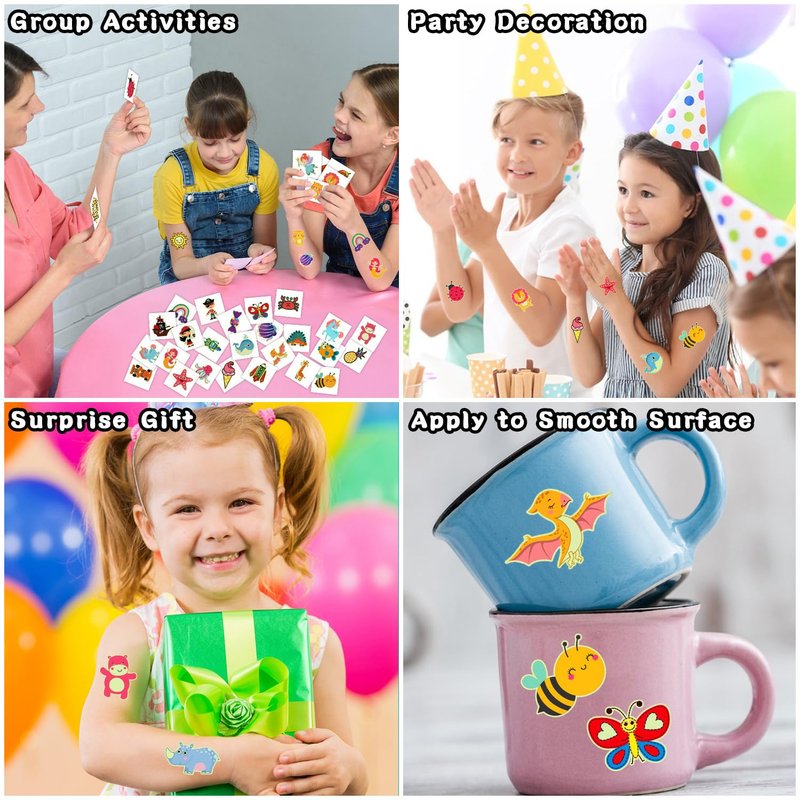 - 【Individually Cut Tattoos】Our temp tattoos are individually cut tattoos, it is easy to carry and can be distributed to kids individually. There are 50 different patterns in a set, which means that every child at the party can get a different tattoo. No need to use scissors and this keeps the children safe while they play.