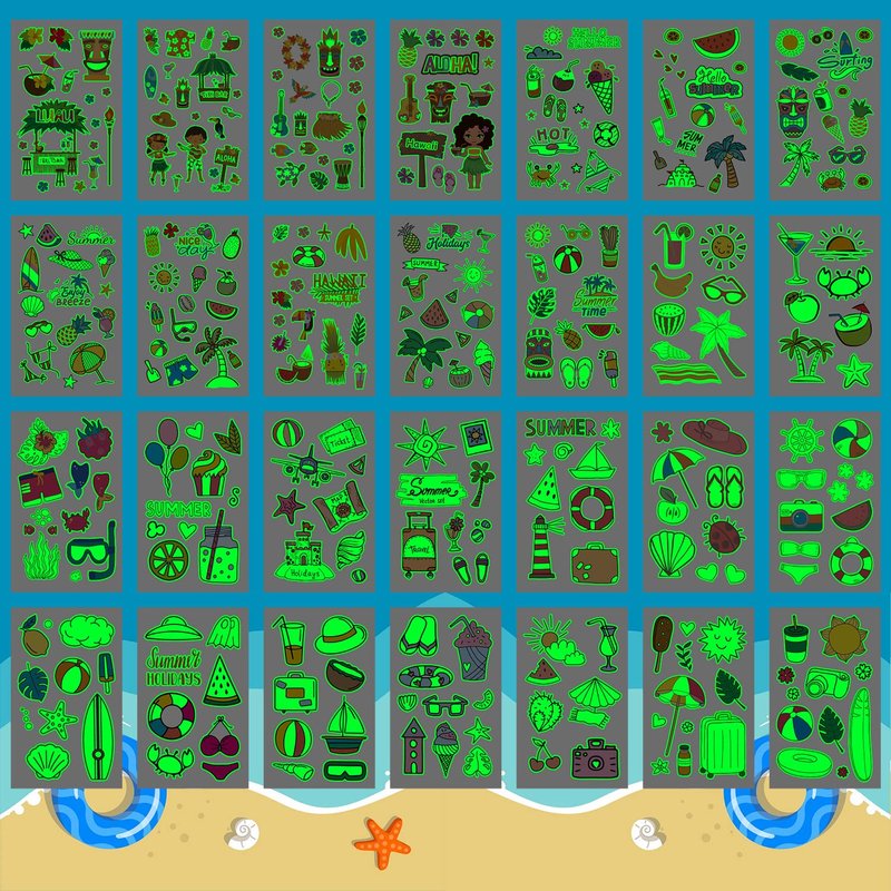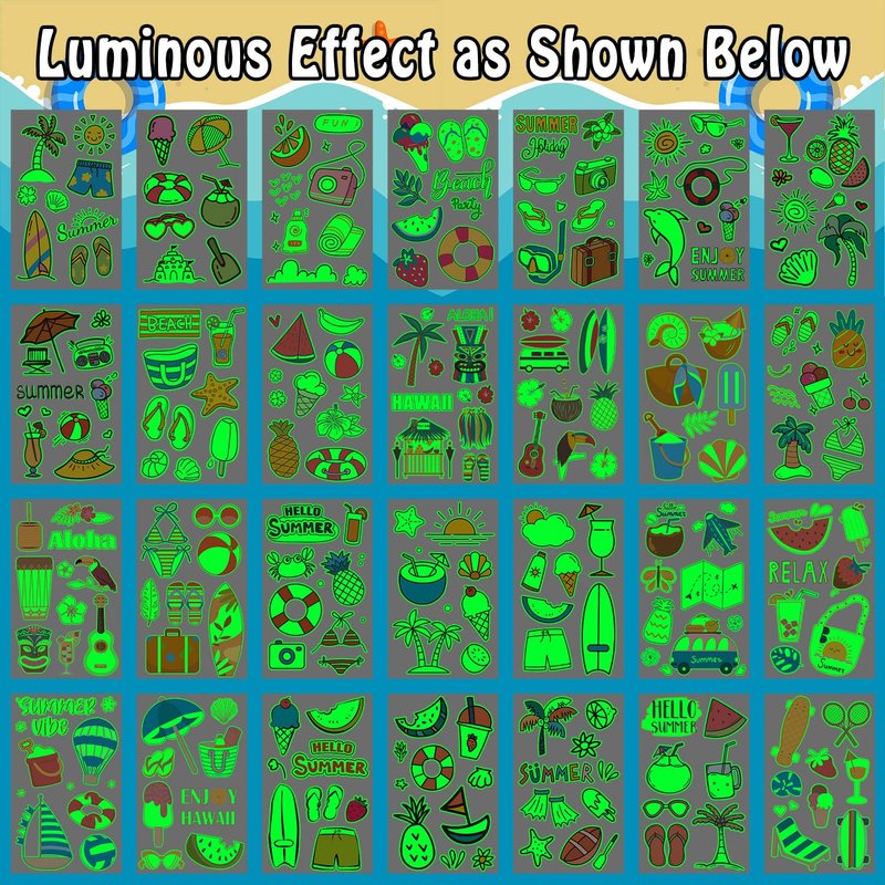 - 【Creative Hawaiian Party Favors that Will Glow!】These tattoos stickers are perfect for Hawaiian/luau/tropical/pool/summer/beach kids party supplies, birthday party decorations, party favors, gifts for kids, games, pinata. You can also apply them to your body or some smooth objects, such as glass, tile, water bottle, gift box, phone case and so on.