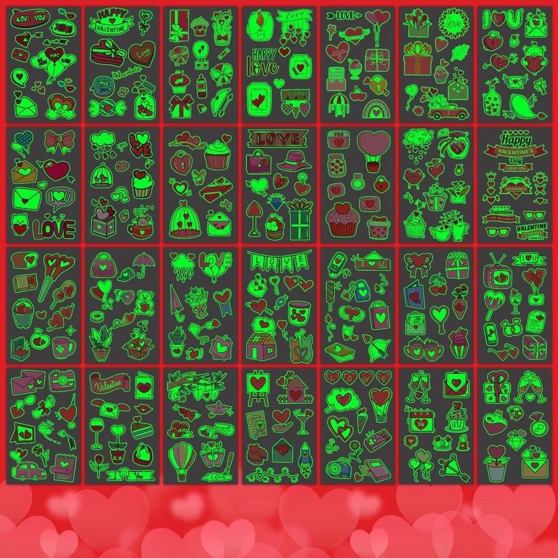 - 【Glow Valentines Tattoos for Kids】Glow Valentine’s Day tattoos for kids boys girls. Even at a night party with lots of people, these luminous tattoos will make you unique among the crowd! These super cute elements in our fake tattoos include Heart, Love, Lips, Flowers, Roses, Balloons, Cake and other Valentines-related patterns!