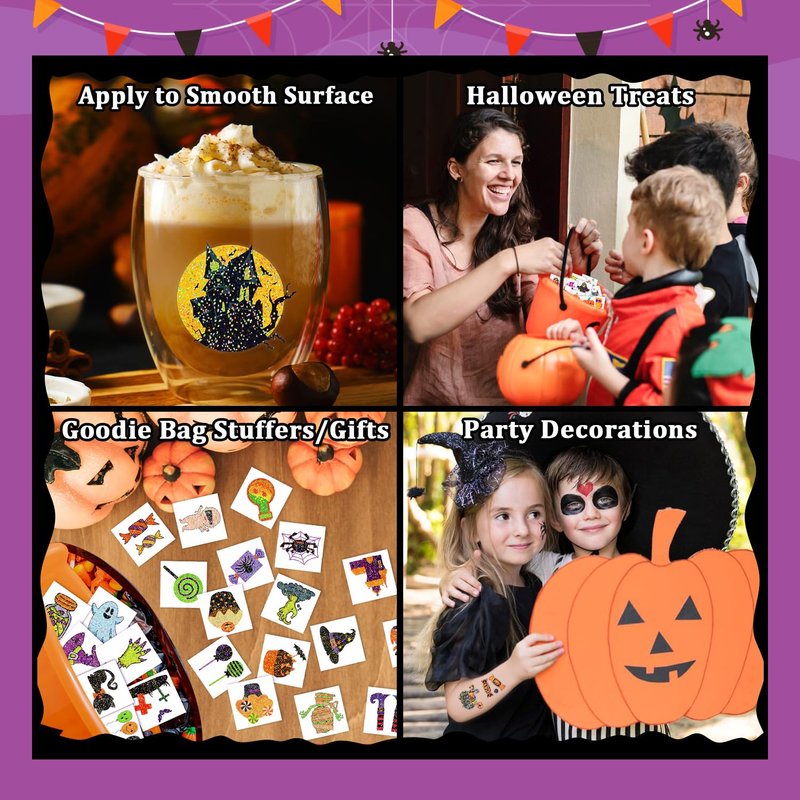 - 【Halloween Party Supplies for Kids】These glitter temporary tattoos are suitable for Halloween party decorations, party supplies, party favors, goodie bag stuffers, games, toys and so on. Great choice to give these tattoos as Halloween treats to those cute trick-or-treaters. Let's enjoy the Halloween party together!
