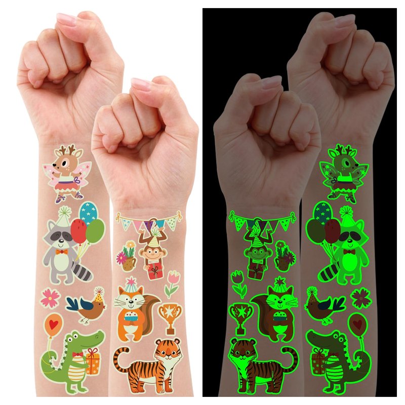 - 【Applicable Place】These animal tattoos stickers are suitable for kids birthday decorations, party supplies, party favors, baby shower party, zoo party, goodie bag stuffers, games, toys, etc. You can apply them on some smooth objects, such as glass, tile, water bottle, stainless steel, plastic, mobile phone case, etc. Are you looking for the glowing party accessories? Partywind glow temporary tattoo is your good choice, which will add the fun of parties.