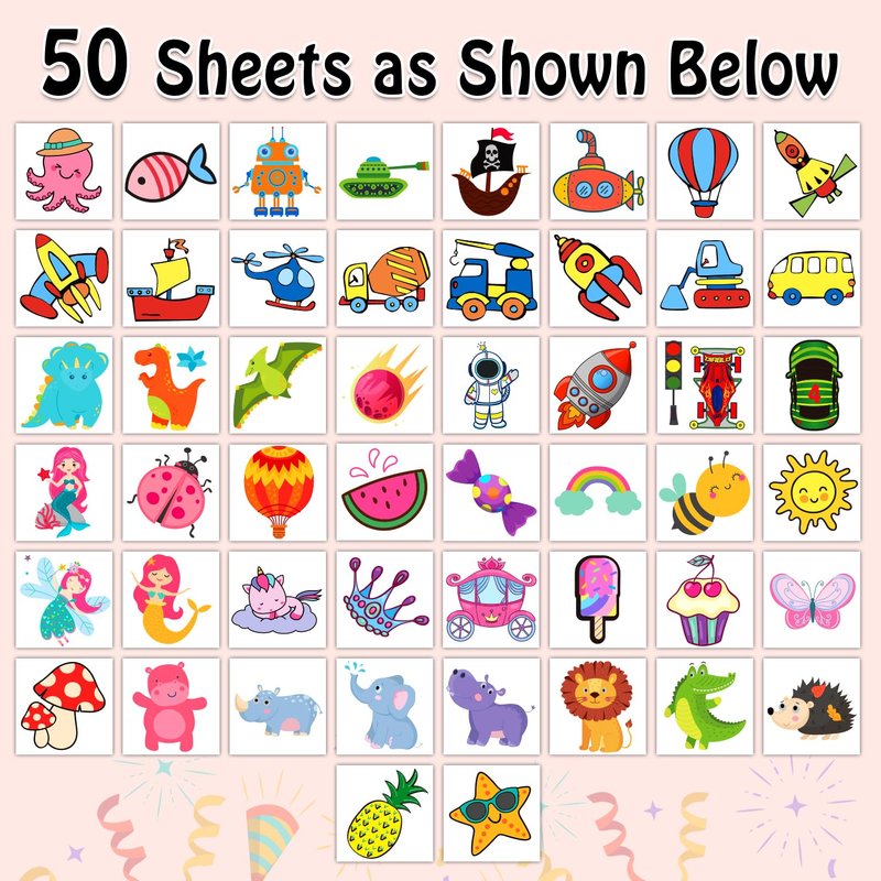 - 【Exclusive Designs & No Duplicates】50 Color-print tattoos designed exclusively by Partywind, incorporating the most popular elements for kids. No repeating patterns. Great choice as party supplies to give your kids and guest a big surprise!