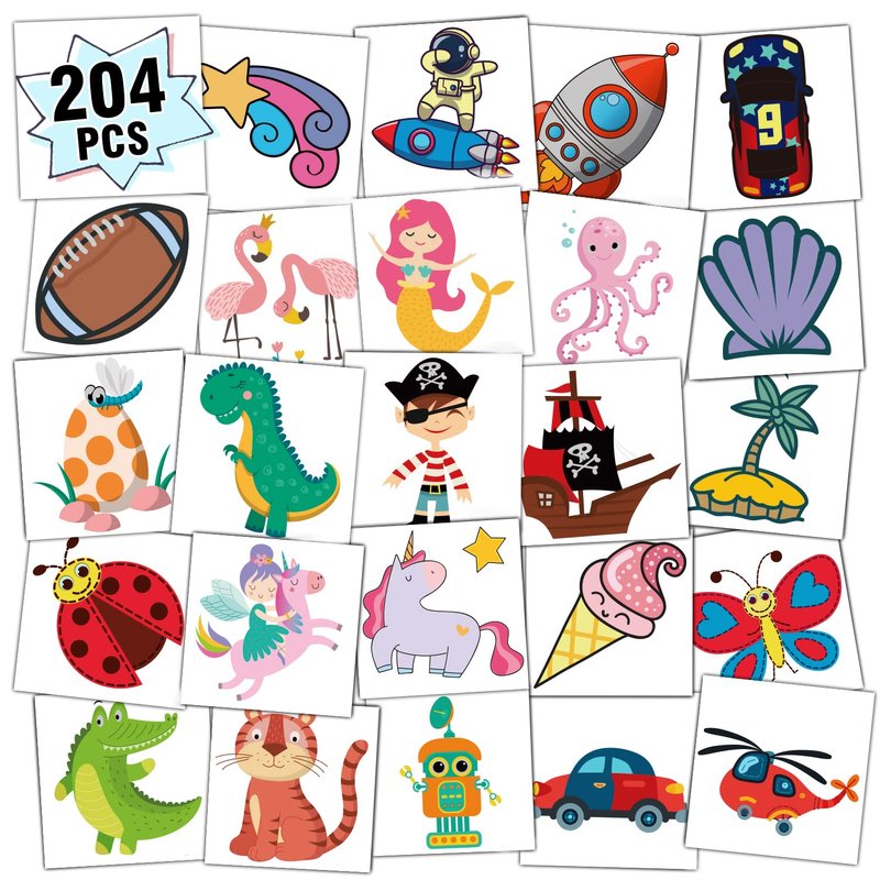 - 【Individually Wrapped Sheets】Our temp tattoos are individually wrapped, It is easy to carry and can be distributed to kids individually. There are 204 different patterns in a set, which means that every child at the party can get a cute tattoo. No need to use scissors and this keeps the children safe while they play.
