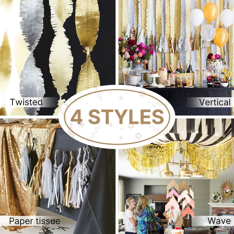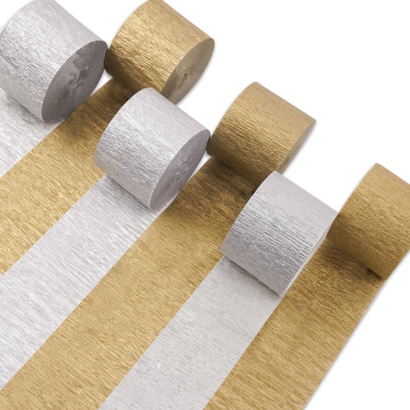 PartyWoo Crepe Paper Streamers 6 Rolls 492ft, Pack of Gold and Silver Crepe Paper Party Decorations, Crepe Paper for Birthday Decorations, Party Decorations, Wedding Decorations (1.8 in x 82 Ft/Roll)