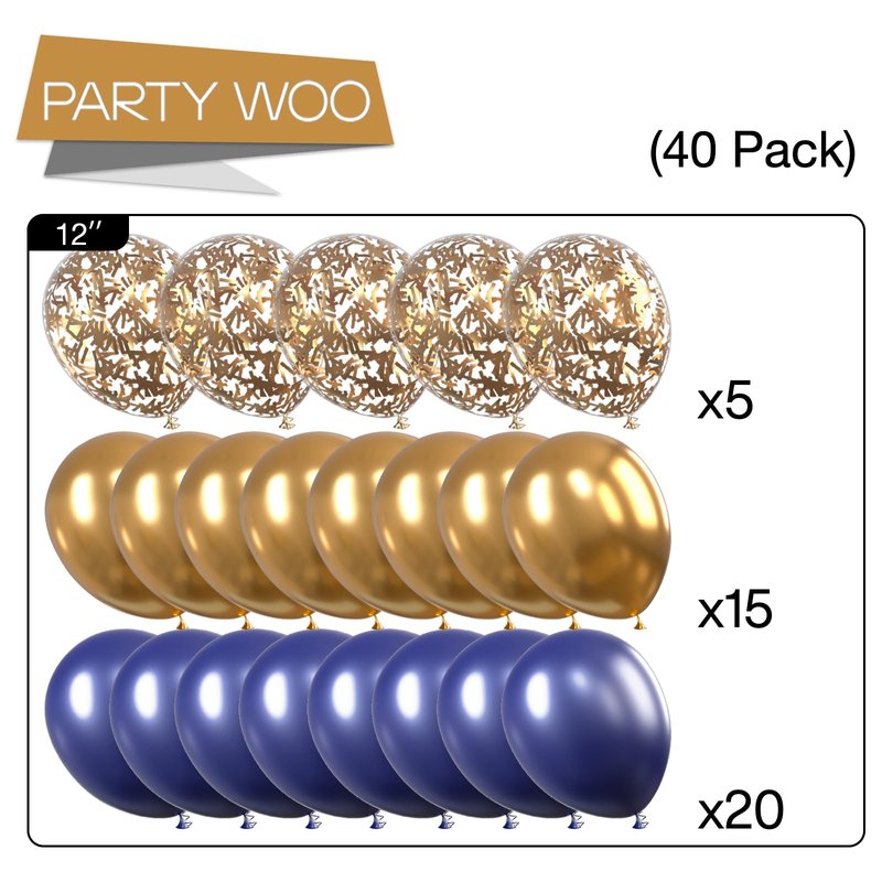 PartyWoo Navy Blue Gold Balloons, 40 pcs Latex Balloons, Navy Blue Balloons, Gold Confetti Balloons and Metallic Gold Balloons, Party Balloons for Navy Blue and Gold Wedding, Navy Gold Baby Shower