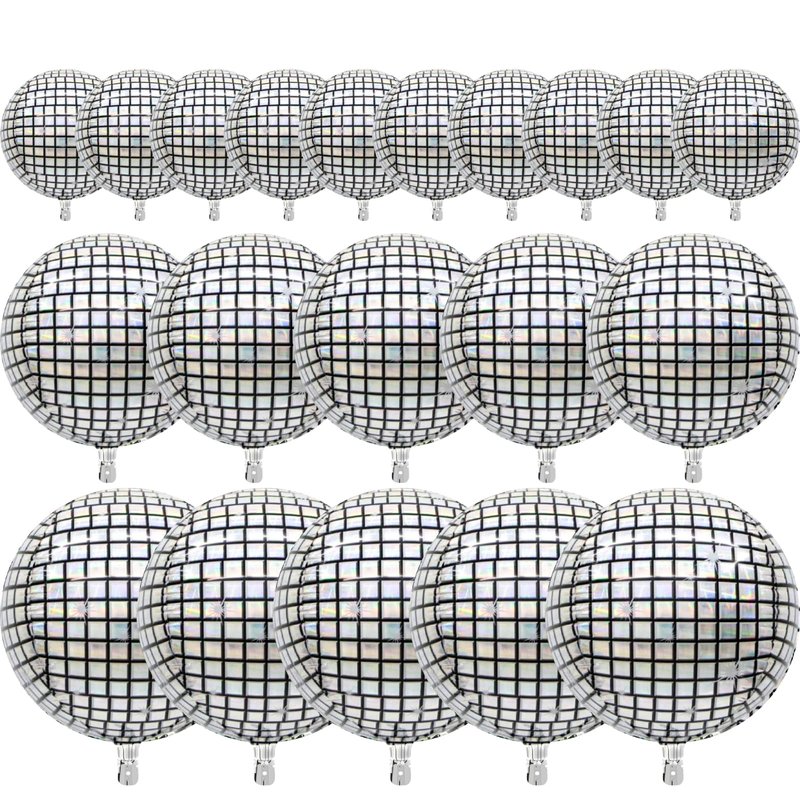 PartyWoo Silver Disco Foil Balloons, 20 pcs Round Foil Balloons Different Sizes Pack of 22 Inch 15 Inch 10 Inch 4D Foil Balloons and Ribbon, Foil Balloons for Birthday Decorations, Party Decorations