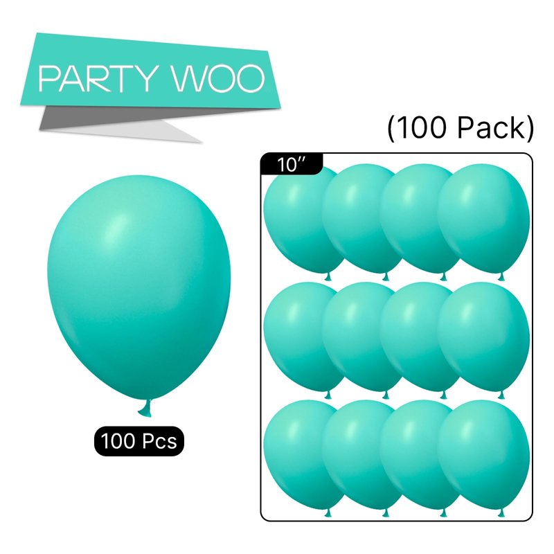 PartyWoo Teal Balloons, 100 pcs 10 Inch Teal Blue Balloons, Turquoise Balloons for Balloon Garland or Balloon Arch as Birthday Party Decorations, Wedding Decorations, Baby Shower Decorations, Teal-Y69