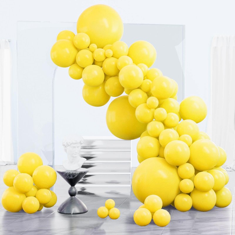 - 85 PCS YELLOW BALLOONS DIFFERENT SIZES: Package includes 18 inch yellow balloons (3 pcs), 12 inch yellow balloons (25 pcs), 10 inch yellow balloons (25 pcs), 5 inch yellow balloons (32 pcs)