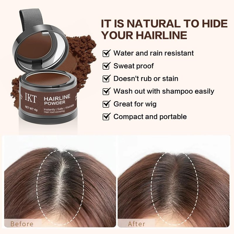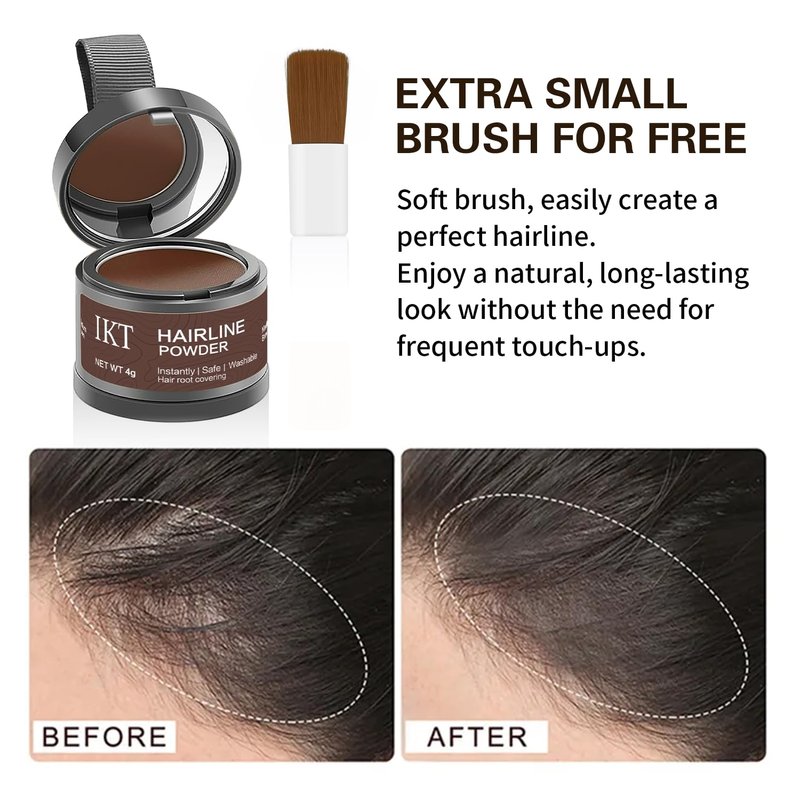 IKT Hairline Powder can quickly cover hair loss, cover hair roots, polish the hair roots, refine the hairline, and can be used to extend color on eyebrows and men's beard lines to create a natural effect. It can be used on the top of men's and women's hair. Covers thinning roots with a long-lasting, windproof and anti-smudge formula.