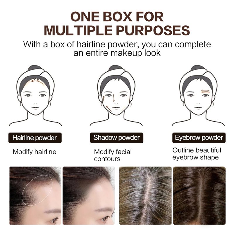 - Easy to use: Apply just enough product to the messy roots of your hair, then smooth out your hairline, then pat some shade powder from light to deep. Extend the color and create a natural effect at the edge of your hairline. According to your personal preference, choose the color that suits you best