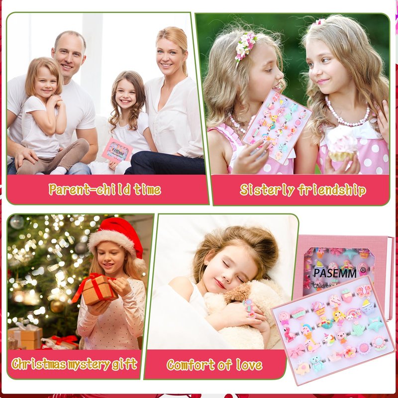 PASEMM 24pcs Little Girl Jewel Rings in Box, Adjustable, No Duplication Kids Play Ring,Pretend Play and Dress Up Ring for 4-12 Year Old Girl Birthday Gifts, 3 4 5 6 7 8 9 10 11 12 Year Old Girl Toy