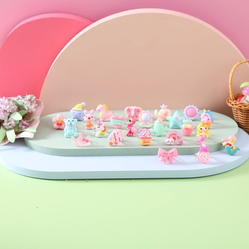 💍【Unique Design Rings for Girls】There are 24PCS cute little girl jewelry rings in box. No duplication, which will make the little girl more excited and mesmerized. All these girl rings are with vibrant color and lovely design, there are sunflower, elephant, bear, rabbit, mermaid, flamingo, unicorn, rainbow, lollipop, crown, dinosaur, ice cream and so on. No duplication, shown as picture. Great gifts idea to your favorite princess.