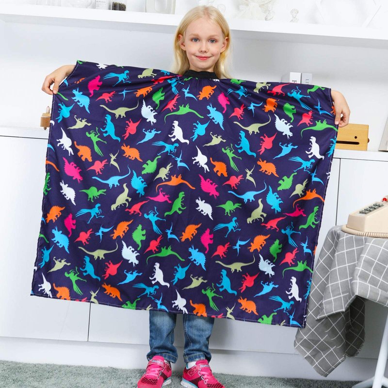 - 【Adjustable Neck Size Design】This hair cut cape comes with an adjustable hook and loop design on the neck, you can adjust the neck size to fit your child, it won't strangle your child uncomfortably and won't leave a gap for the cut hair to slip through. The kids haircut cape is printed with high-definition dinosaur pattern, which can attract your child's attention and make him or her love haircutting.