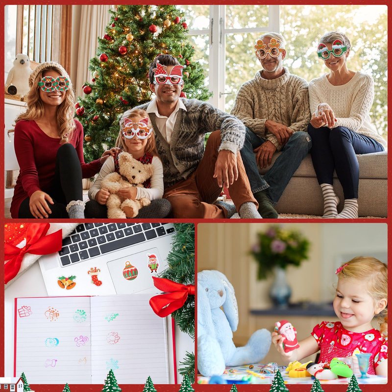 - Delight in Every Item: each item in our Christmas party favors gift set is designed to spread joy and stimulate creativity; From small coloring books featuring a holiday theme to vibrant crayons, cute glasses, engaging stickers, suitable as prizes, photo booth props, goodie bag treats
