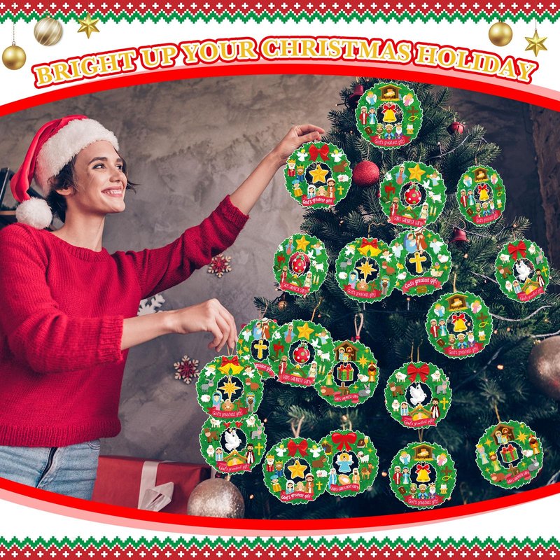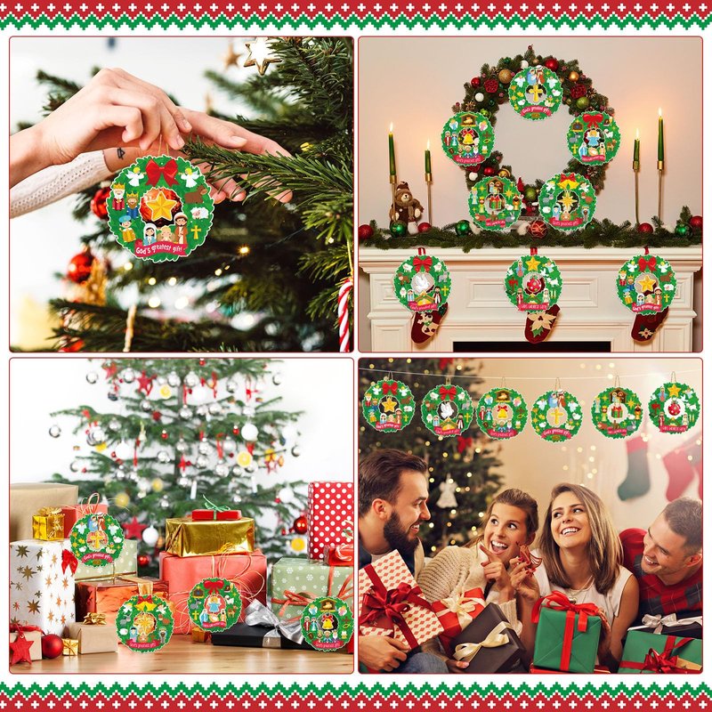 Pasimy 24 Sets Nativity Wreath Crafts Kits Religious Christmas DIY Crafts Nativity Scene Hanging Ornaments Holy Night Craft Stickers for Home Class Religious Xmas Holiday Party Game Activities Decor