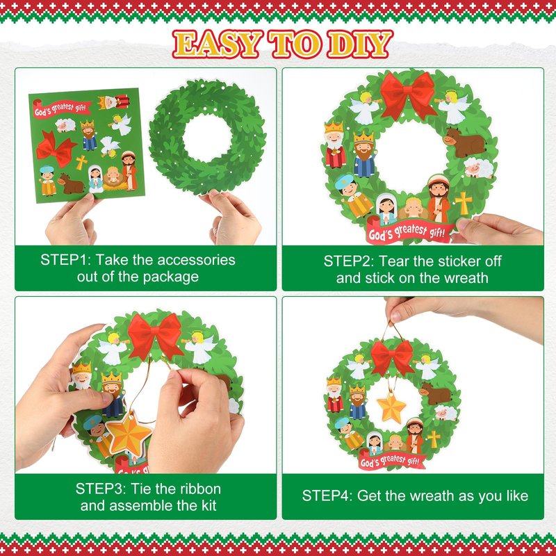 - Size and Materials: nativity DIY crafts measure about 4.7x4.7 inch, craft from quality cardboards, stickers stick well, the rope is strong and long enough to hang multiple wreaths. You can trust this Holy Night craft kit to last through the holiday season