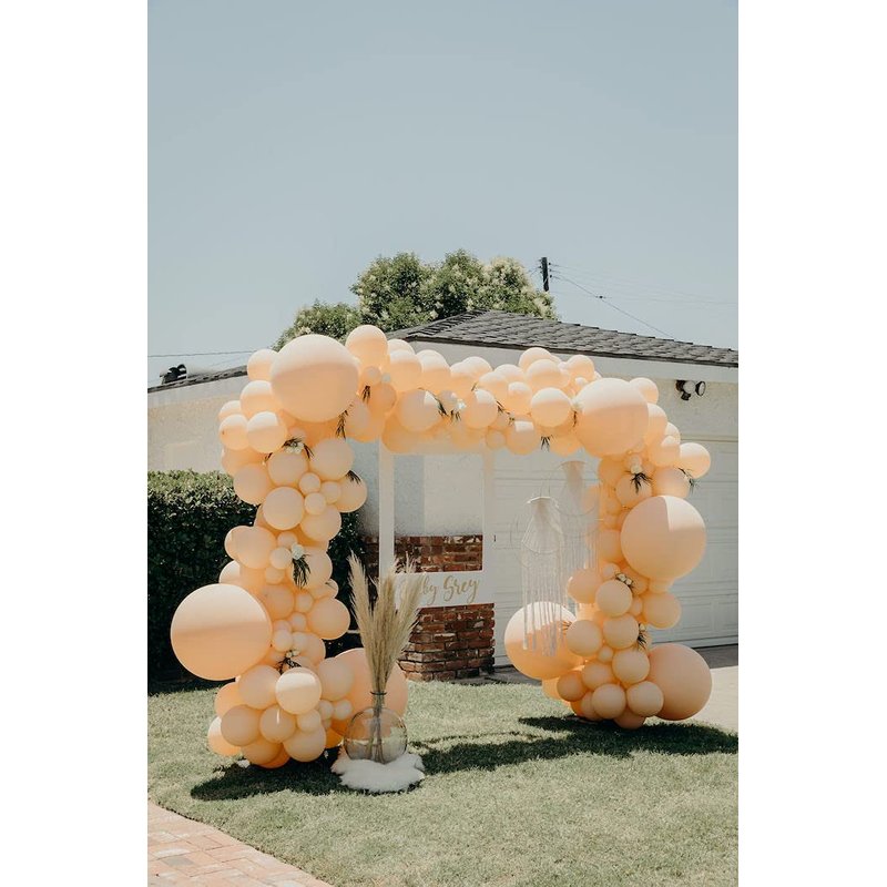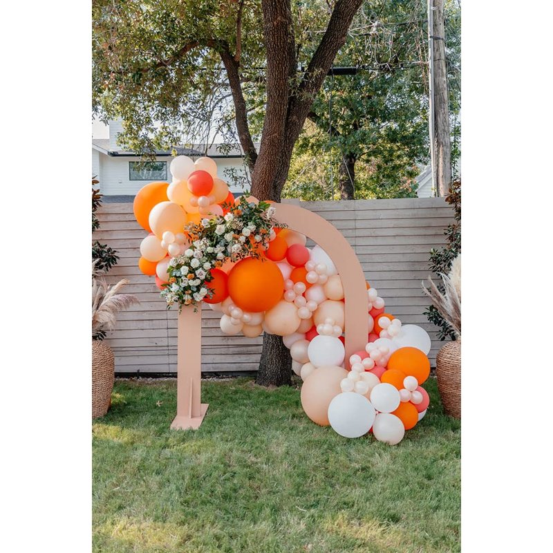 - EASY TO ASSEMBLE ORANGE BALLOONS ARCH: Pastel orange balloons can be easily inflated with air or helium in a right size. Pull 12 inch balloons knots into balloons strip tape holes and then use balloons dots with 5 inch balloons to fill gaps, and put 18 inch balloons last to make a nice peach blush balloons garland shape. A beautiful DIY party balloons garland arch was easily done!