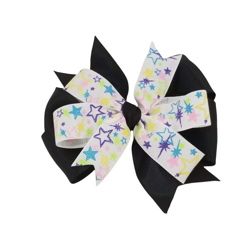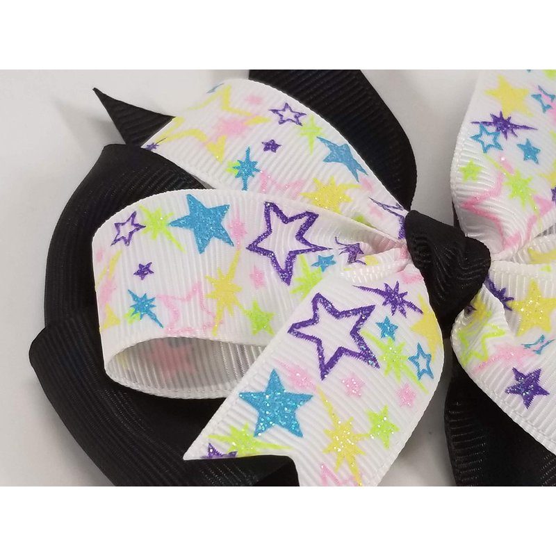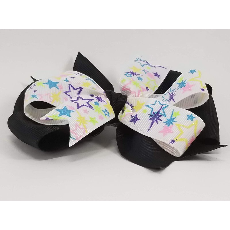 Pastel Stars on Black Hair Bow