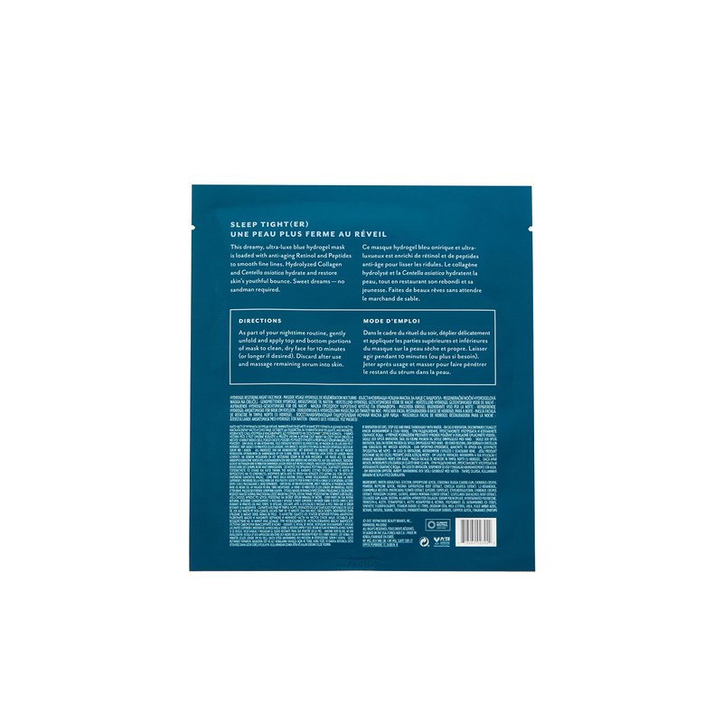 Inspired by our Patchology Restoring Night Eye Gels, we're wishing you a good night with this dreamy RESTORING NIGHT HYDROGEL FACE MASK. Featuring Patchology's gel technology, this facial mask quickly delivers powerful ingredients to your skin in just 10 minutes. Our Beauty Sleep ultra-luxe blue hydrogel mask is loaded with Retinol to support anti-aging and it's packed with Peptides to help smooth fine lines and wrinkles. The Hydrolyzed Collagen and Centella Asiatica hydrate and restore skin's youthful bounce.