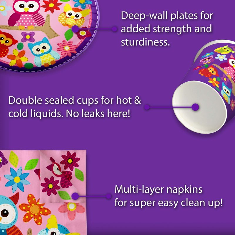 - PREMIUM DESIGN - Our Patchwork Owl Themed Party Supplies are suitable for girl’s and boy’s birthday parties, holiday celebrations with your family and friends, special events or for just fun-filled daily meals, snacks, and desserts with picnics and cookouts. Shrieks of joy will be your reward when you use these fun and unique party tableware sets.