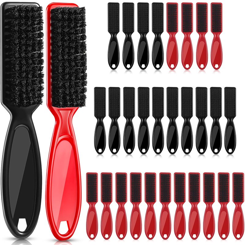 Patelai 30 Pcs Blade Clipper Cleaning Brush Scrub Brush Barber Fade Brush Trimmer Cleaning Brush Nylon Hair Styling Brush Tool for Men (Black, Red)