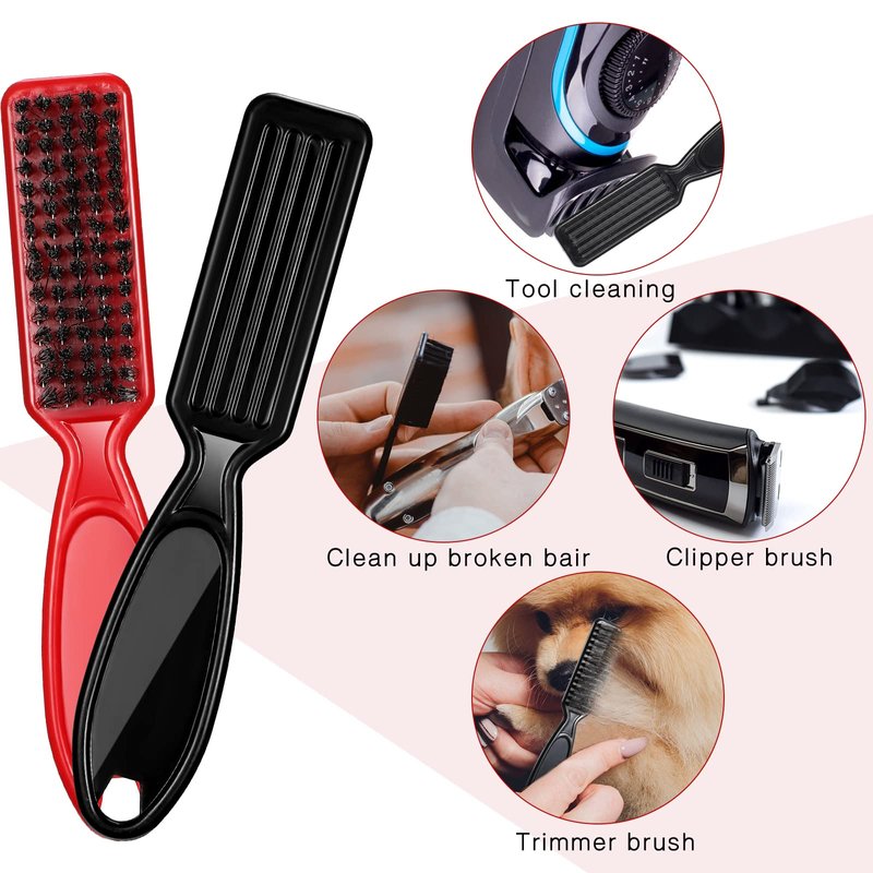 Features: Practical cleaning tools: The fade brush is a practical tool for cleaning hair clippers, especially for hairdressers, easily sweeping hair or dust from the clippers. Holes at the end of the handle allow for easy hanging and easy storage. Easy to use: Featuring a non slip and long handle, easy to grip and control, this barber brush for fades is convenient for you to use, making the cleaning process faster and easier. Specifications: Material: nylonColor: black, redSize: about 5.4 x 1 inchesPackage includes: 30 x Cleaning brushesNotes: Manual measurement, please allow slight errors on size. The color may exist a slight difference due to different screen displays.
