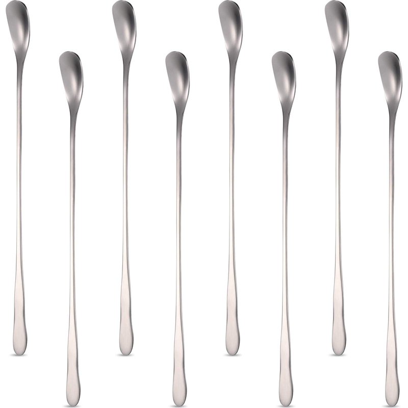Features: Elegant simple design: These coffee stirrers come with modern design and slender streamlined handle, which are easy to match with existing flatware. Versatile usages: These spoons are suitable for bar, home, party, ideal for mixing drinks like cocktail, tea, ice coffee, milkshakes, beer, smoothie, ice cream, fruit juice, etc. Specification: Material: stainless steel Color: silver Size: approx. 7.87 x 0.55 inches/ 200 x 14 mm Package includes: 8 x Stainless steel coffee stirrers Warm notice: Please allow a little error on the size due to manual measurement.