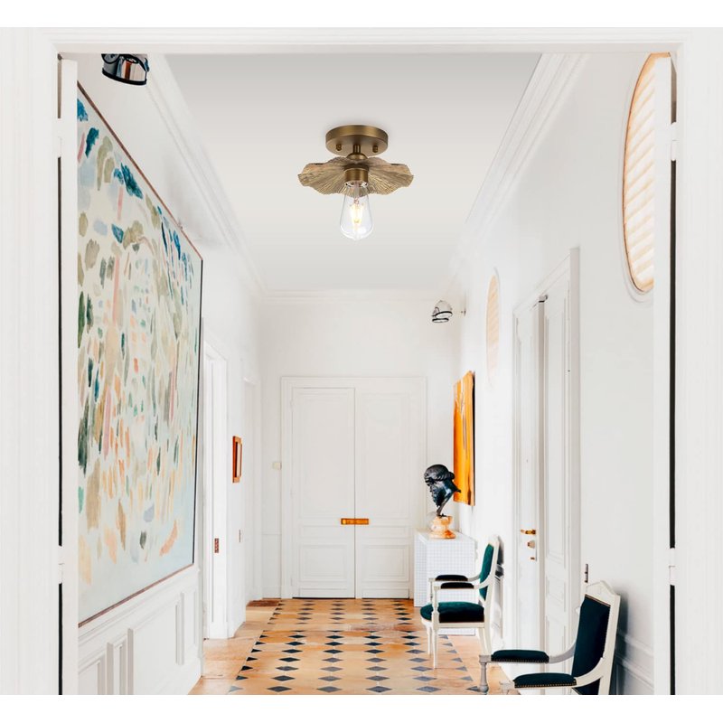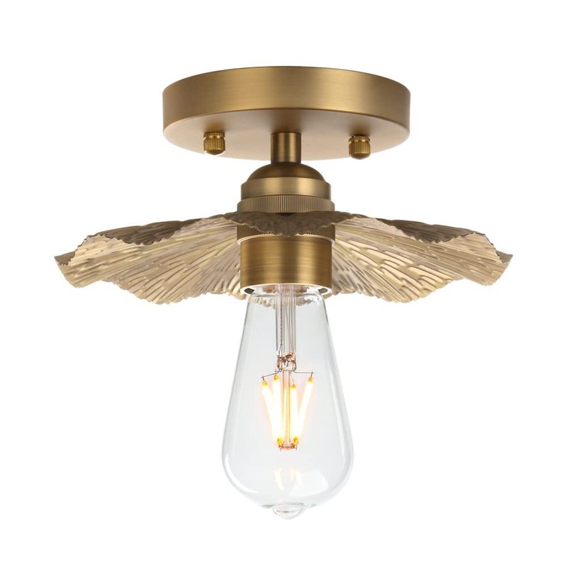 Pathson Vintage Metal Ceiling Light Fixture Brass Finished, Split Flower Design Ceiling Lighting, Industrial Kitchen Art Flush Mounted Farmhouse Lighting for Living Room Hallway