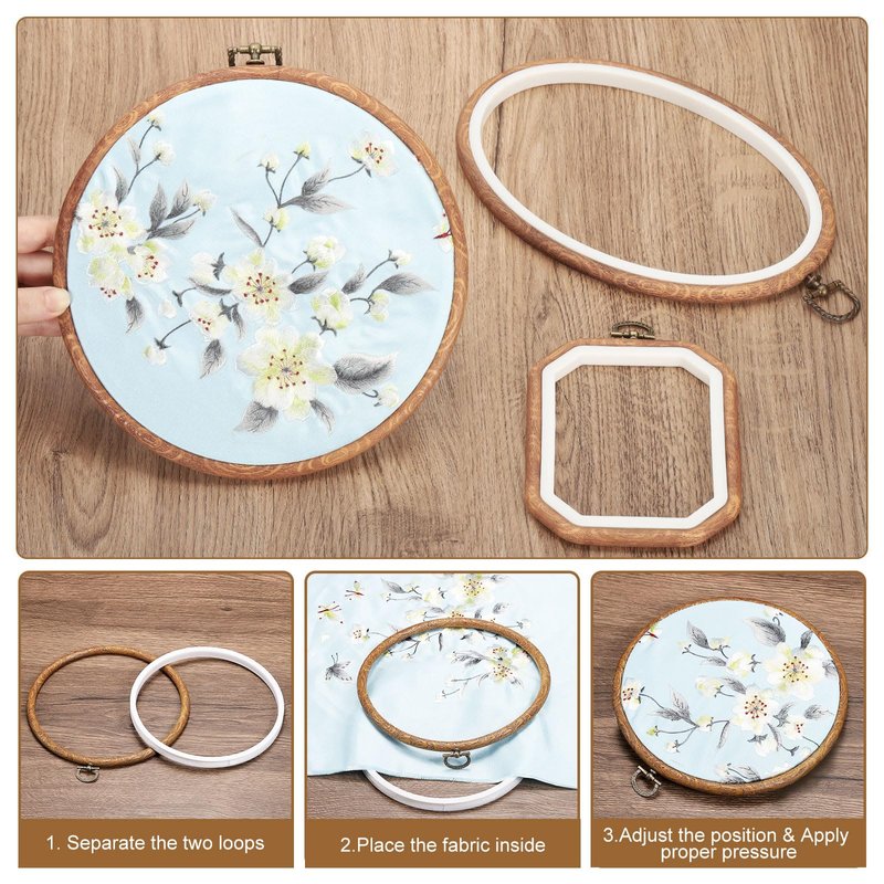 - Easy Operation: To use a decorative embroidery hoop, simply separate the two loops easily, then place the fabric over the white loop, cover with the outer loop, and apply proper pressure to keep the cloth and double loop together and you are ready to start embroidering!