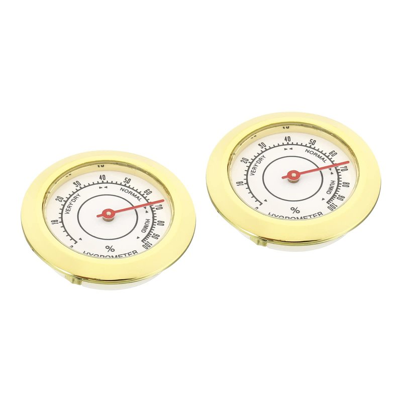 PATIKIL 1.5Inch Round Indoor Outdoor Hygrometer, 2 Pack Mini Humidity Monitor Gauge No Battery Required for Greenhouse Office Room, Gold