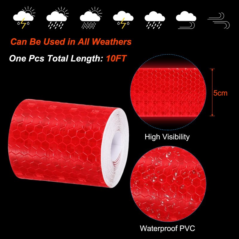 - Specification: Material: PVC; Color: Red; Total Size: 3 Meter x 5cm / 10 ft x 2 inch(L*W); Packing List: 1 Roll x Reflective Tape + 1 Pcs x Straight Handled Scraper.