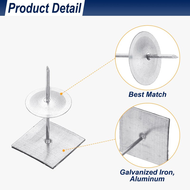 Function - The base of the insulation pin is self-adhesive,it allows you to fix insulation panels easily and conveniently. Metal point makes the nail easy to penetrate into different insulation materials and the washers can help you fix the insulation board in position better.