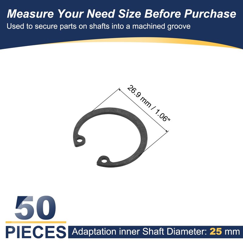 PATIKIL 50 Pcs Internal Retaining Rings, 25mm C-Clip Snap Ring 65 Manganese Steel Internal Retaining Circlip Snap for Automotive Grooved Shafts Stud