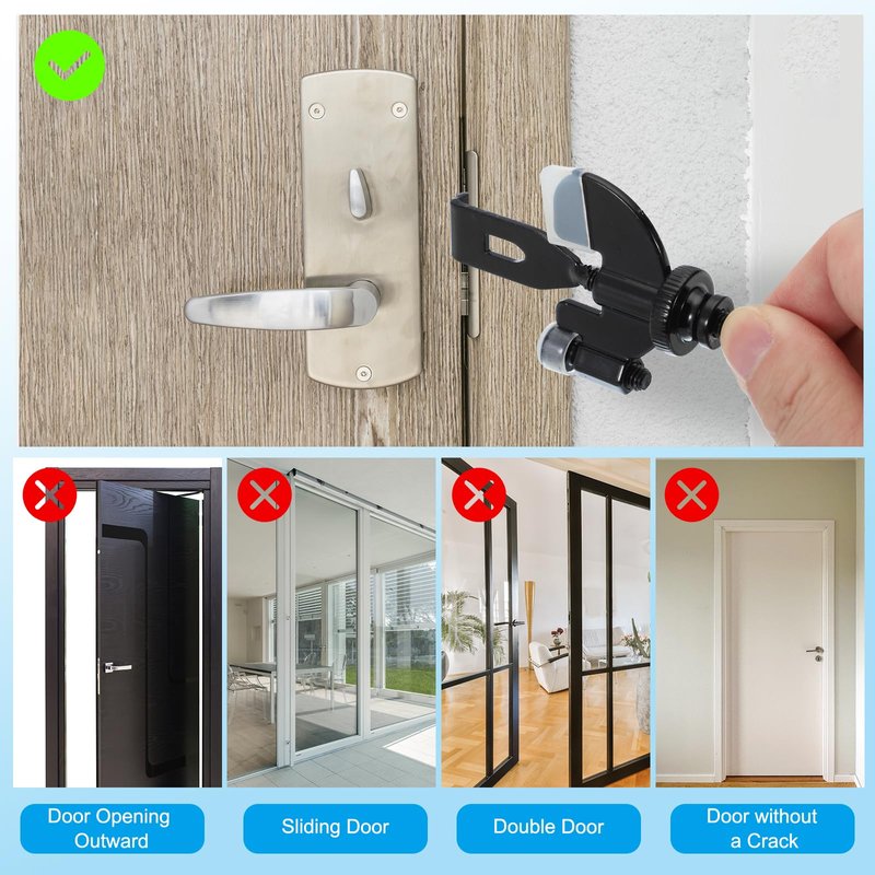 - Application - The Travel Door Lock is suitable for the safety door stop of most types of door locks, such as hotels, dormitories, apartments, short-term rental, bathrooms, bedrooms, private rooms, etc. This Portable Lock also helps prevent pet from going out and prevents families from opening the door to un-known people.