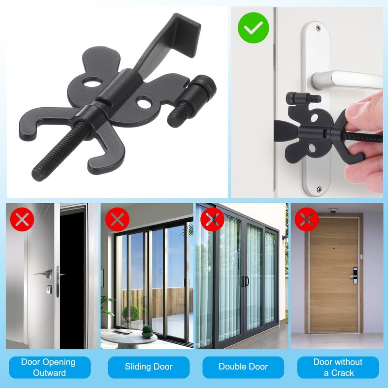 The door lock security fits most types of door locks. It is perfect for traveling, hotels, apartments, dorms, bathrooms, bedrooms, or private rooms, it can also be used to keep pet out.