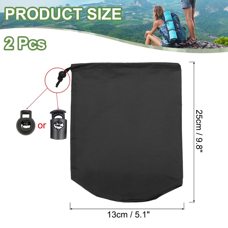 PATIKIL Stuff Sack, 2 Pcs 5 x 10 Inch Waterproof Outdoor Storage Sack Portable Drawstring Dust Flap Bag Lightweight Sleeping Bag for Camping Hiking Travel, Black