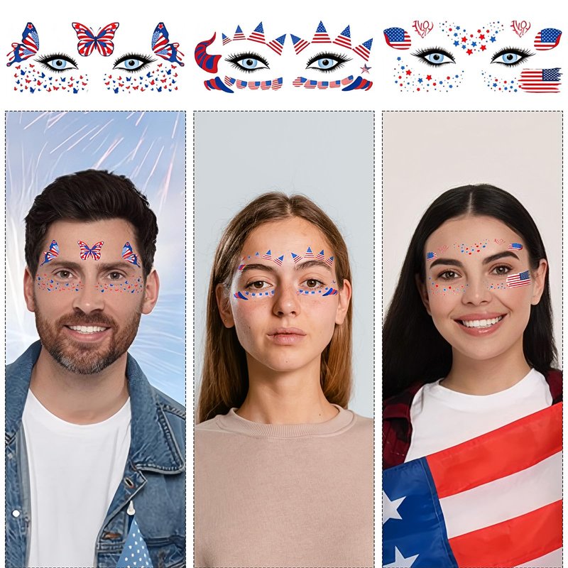 - Party Accessories to Celebrate Independence Day: American flag Face Tattoo Stickers for patriotic-themed party supplies are popular gifts for kids! Not only perfect for the 4th of July, Memorial Day, Independence Day parades, President's Day, veteran homecoming party, and other patriotic celebration events, but also suitable for family gatherings, costume parties, and birthday parties!