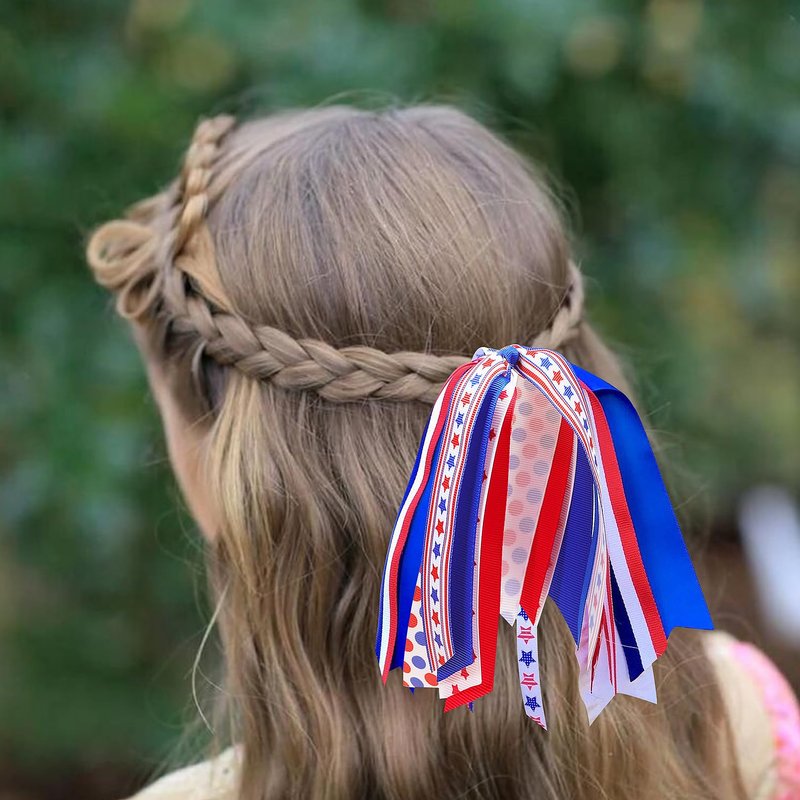Patriotic Hair Scrunchies for Hair - 2Pcs American Flags Hair Ties Red White and Blue Hair Ribbon Hair Elastics Bands Ponytail Holders 4th of July Hair Accessories for Women Girls Independence Day
