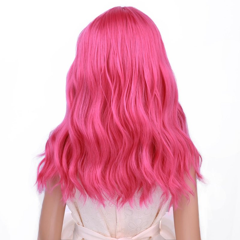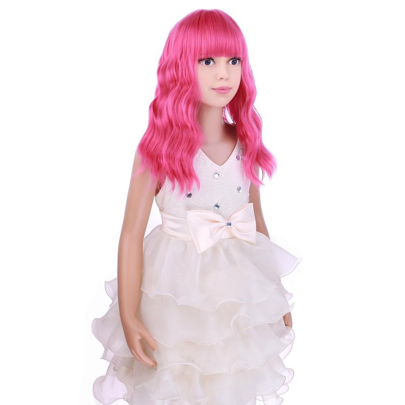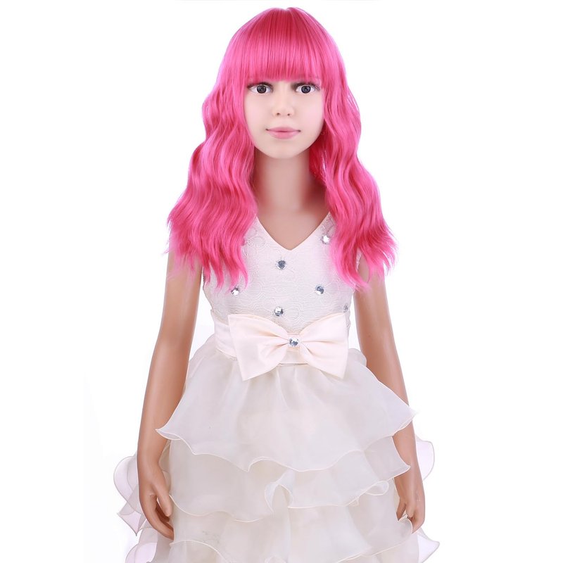 PATTNIUM Hot Pink Wig Kids Short Wavy Wig Hot Pink Wig with Bangs Girls Wig Cosplay Halloween Party Costume Wig (Hot Pink)
