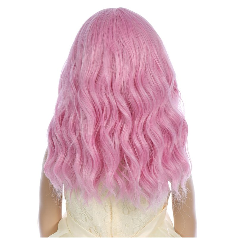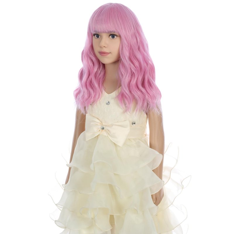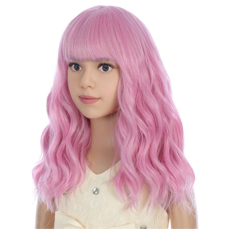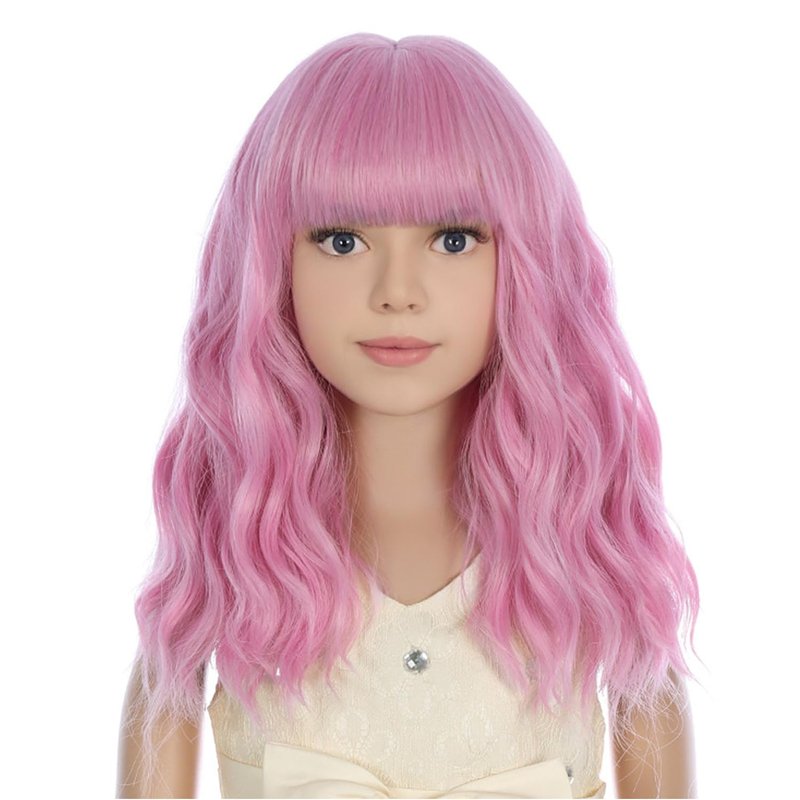 PATTNIUM Light Pink Wig Kids Short Wavy Wig Pink Wig with Bangs Girls Pink Wig Synthetic Wig Cosplay Costume Wig (Light Pink)