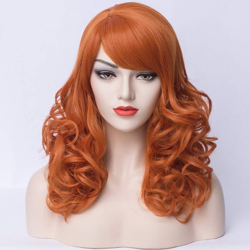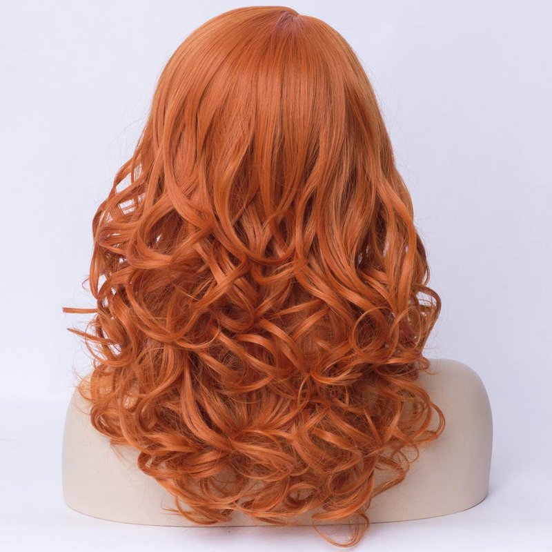 PATTNIUM Orange Wig Shoulder Length Curly Wig Orange Wig With Bangs Ginger Wig for Women and Girls Heat Resistant Synthetic Cosplay Costume Wig (Orange)
