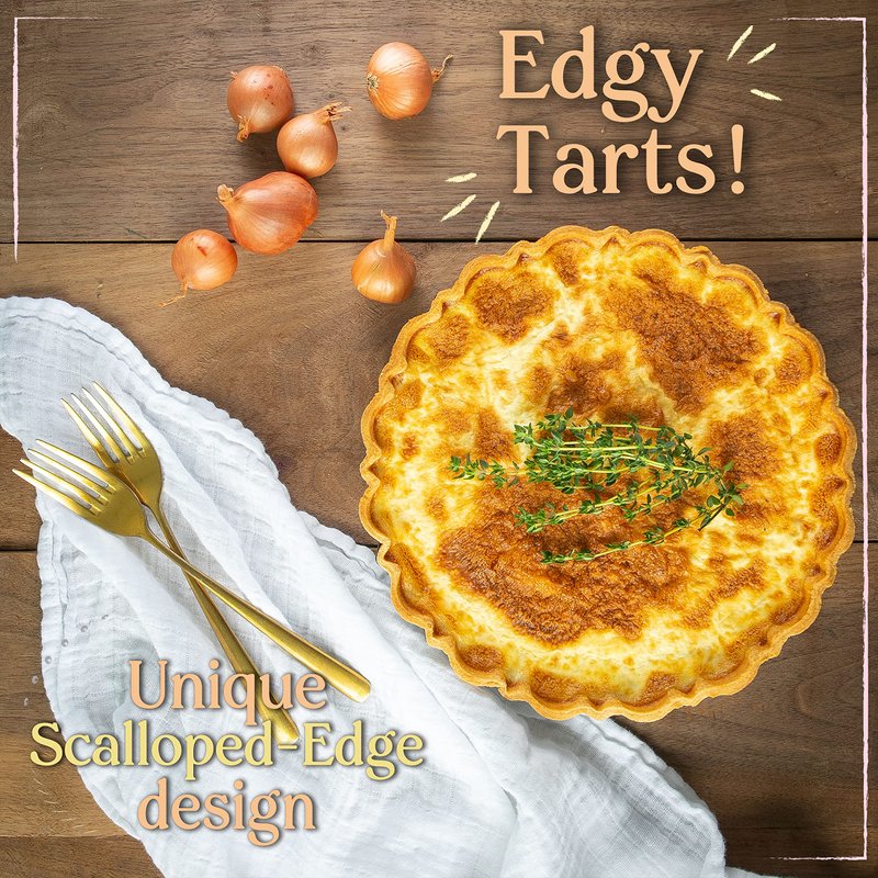 - Beautiful Results – Look no further for a quiche baking dish with consistent results. A removable bottom, non-Teflon surface, and ample pie pan depth make it easy for you to achieve great presentation.