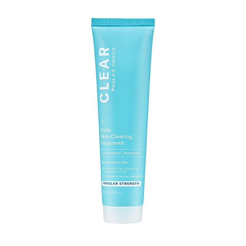 - Paula's Choice CLEAR Daily Skin Clearing Acne Treatment is uniquely-formulated to fight acne using benzoyl peroxide while also hydrating & soothing skin with non-fragrant, nourishing plant extracts. This blemish-fighting solution works well for all skin types and it's even suitable for skin prone to cystic acne.