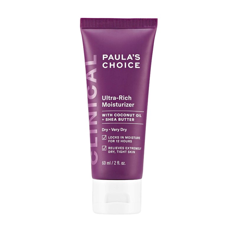 - Paula's Choice CLINICAL Ultra-Rich Moisturizer with Coconut Oil & Shea Butter locks in moisture for 12 hours, giving long-lasting relief from the discomfort of dry, flaky skin and minimizing the appearance of a rough, dull complexion.