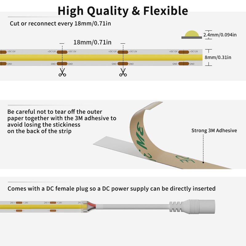 The advantages of Our COB LED Strip Lights: