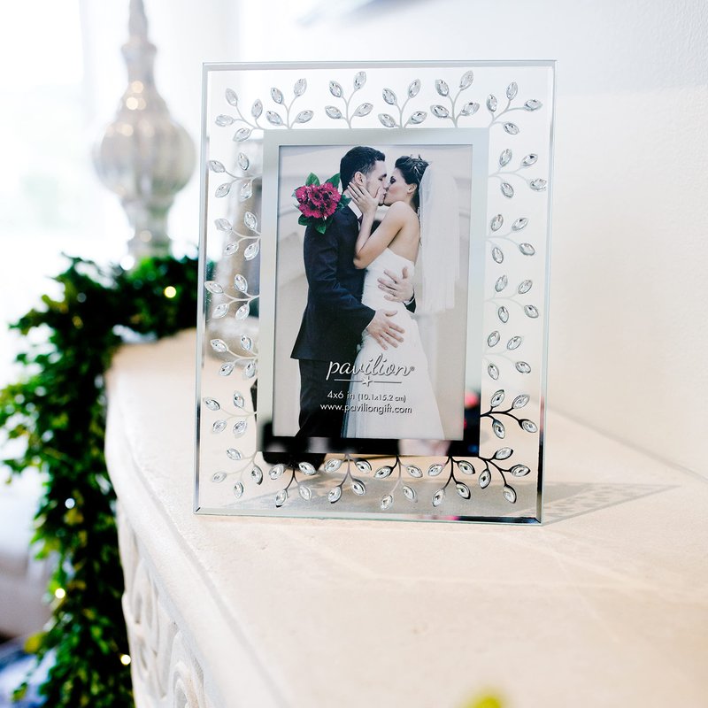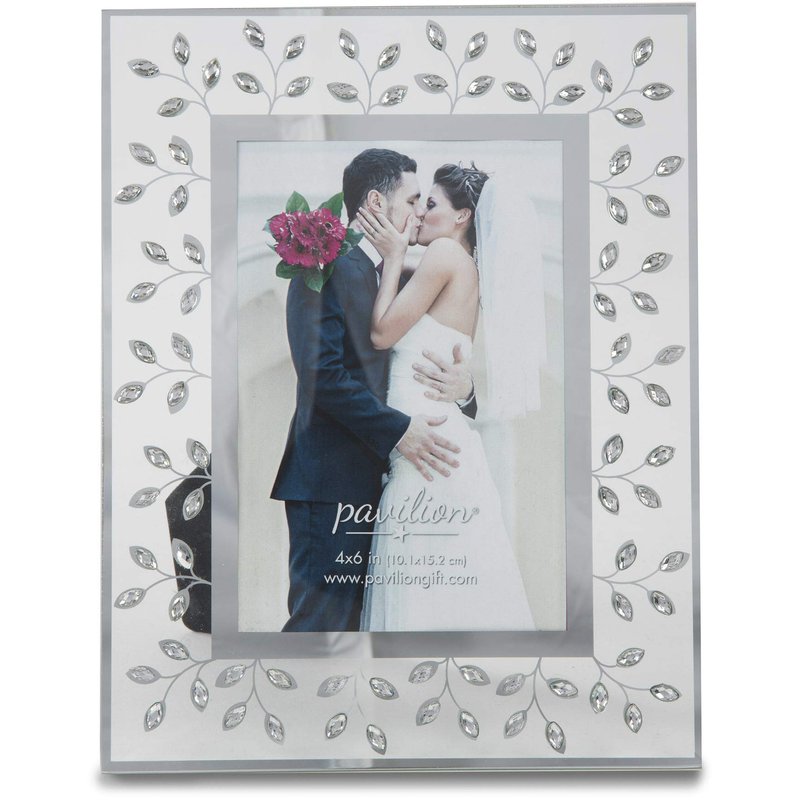 Pavilion Gift Company Glorious Occasions Tree Branch White Crystal Wedding Picture Frame, 4" x 6", Silver